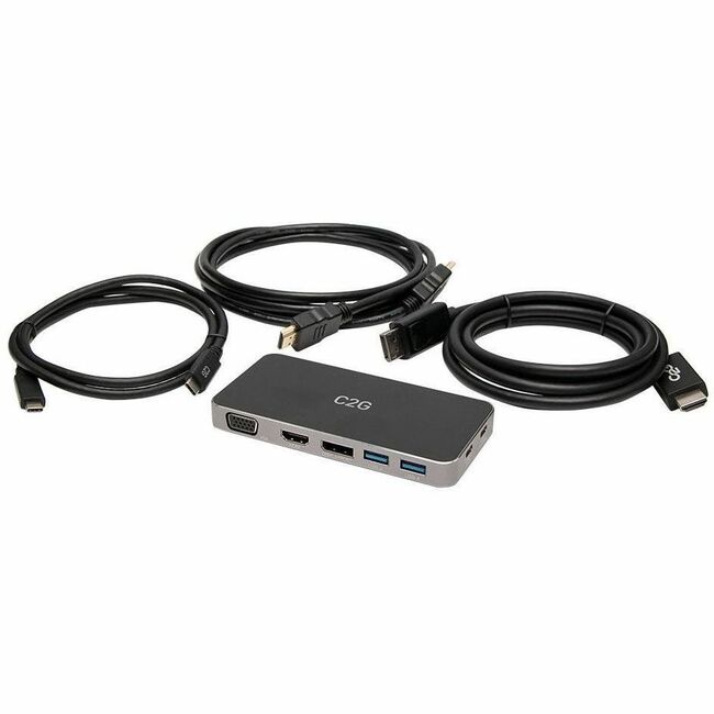 C2G Dual Monitor Docking Station Kit - USB C to 4K HDMI, DisplayPort & VGA - for Notebook/Monitor - 100 W - USB Type C - 5 x USB Ports - 2 x USB 3.0 - HDMI - VGA - DisplayPort - Thunderbolt - Wired